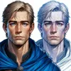 Tall and slender, with a weather-beaten face, no facial hair, often seen wearing a blue cloak