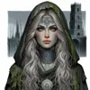 Standing at 5'7", Fistandria is an elegantly beautiful elf with angular features, long silver hair that cascades like a waterfall down her back, and piercing violet eyes that seem to hold secrets of the cosmos. Her attire is a blend of mystic robes, adorned with intricate patterns of celestial bodies, and various magical artifacts that glimmer faintly with arcane energy. A faint scar runs from her temple to her left cheek, hinting at a darker past.