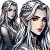 Velkyn has long, silver hair that cascades down her shoulders in intricate braids, framing her sharp, angular face. Her piercing red eyes seem to glow with an inner fire, and her lithe, agile body moves with predatory grace. She often dresses in elaborate dark robes that signify her high status and ambition.
