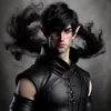 An Elf Monk aged 24 years dressed in a sleeveless black leather monk habit. His piercing green eyes, which betray a depth of unfathomable curiosity, peer out from beneath a mop of dark hair. A swirling dark cloud seems to always obscure his form, lending an air of mystery and danger.