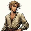 A tall, lanky man with tousled blond hair and mischievous blue eyes. Carl has a perpetual smirk on his face, contrasting his serious demeanor. His sun-kissed skin tells tales of long days in the field, and his hands are rough with callouses from wielding a sword. Despite his tendency towards melancholy, his movements are surprisingly nimble and quick, often startling friends and foes alike.