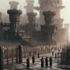 The Nexus Processing Hub stands as a stark monument to the Red Sun Dominion’s relentless pursuit of control and efficiency. It was established after the forcible acquisition of Meristine, built directly atop the ruins of what was once a peaceful settlement belonging to the original civilization. This strategic location was engineered to meet the Dominion's unyielding demands, functioning both as an intake facility and a sorting center, managing human resources like inventory.